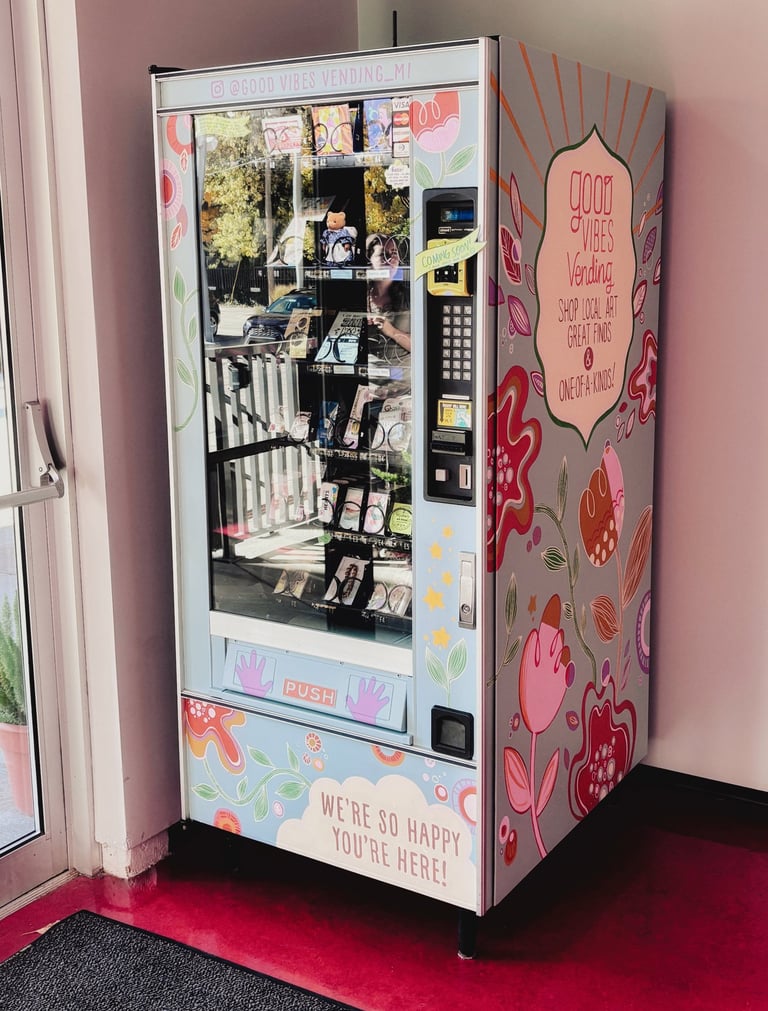 Stop in during regular business hours. The vending machine is next to the box office. While you're there, be sure to check out the current gallery artist and ask about the amazing performances and programming they have going on.